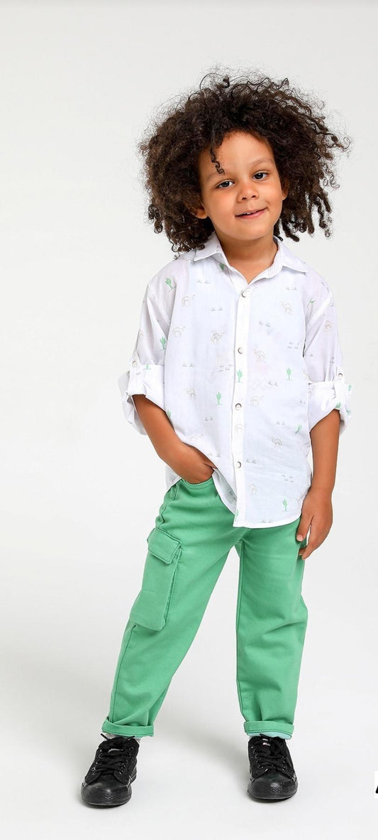 White Tshirt with Beige Pocket Shorts Set
