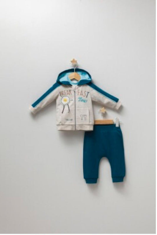 Boys Bluish Green Tshirt and Grey Shorts - Lets Play