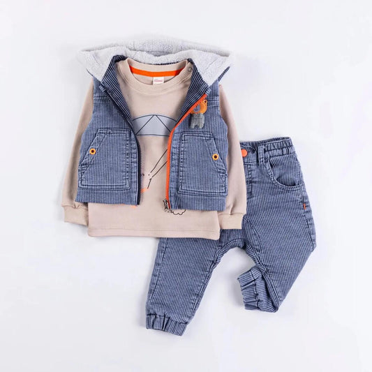 Minibombili Boys 3-Piece Coat, long sleeve tshirt and denim pants
