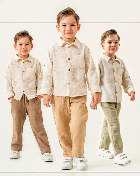 Premium Palm Khaki Muslin Shirt and Pants Set