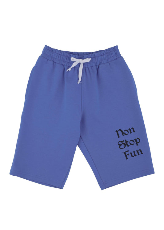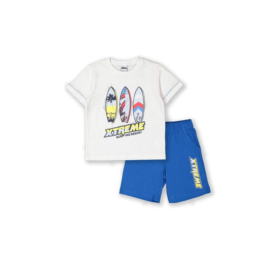White-Blue Boys Moto Cat 2 Piece Shorts Set