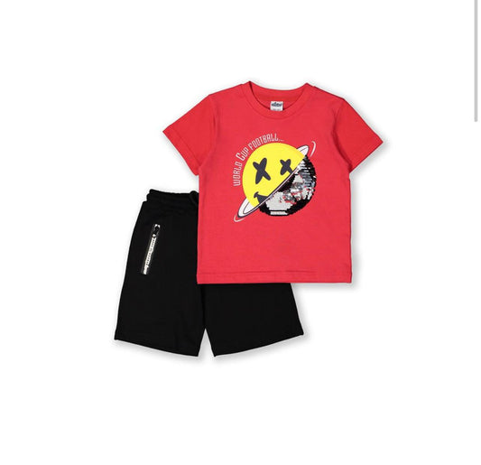 Grey Smiley 2 Piece Tshirt with Shorts Set