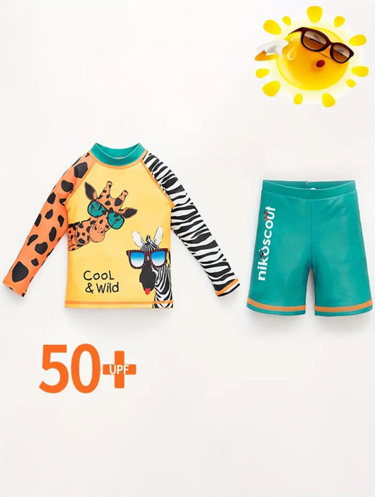 Boys Swimming Trunks with Sun Hat - Seashell Print