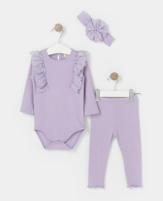 Lilac Ruffle Long Sleeve Body, Legging and Headband Set