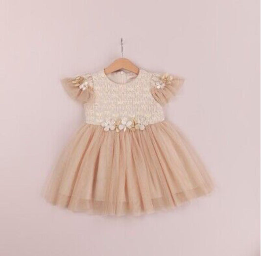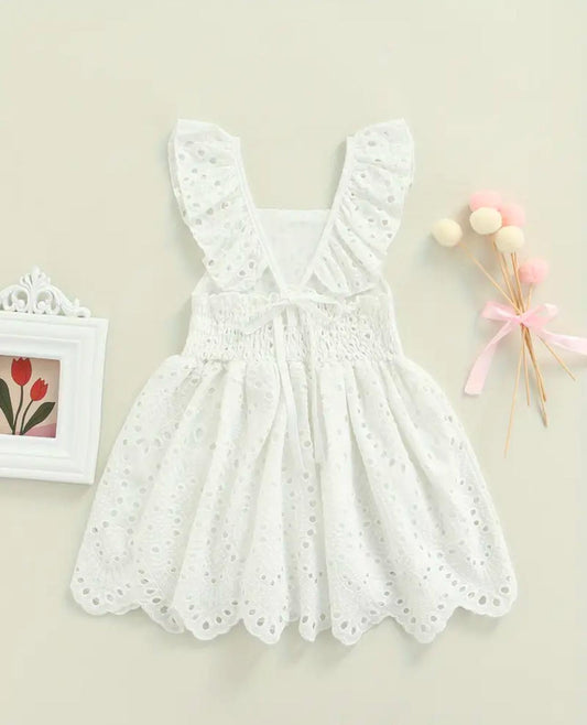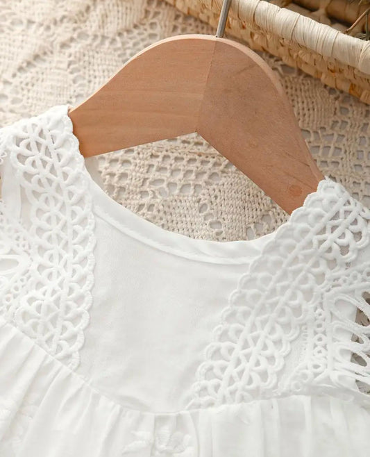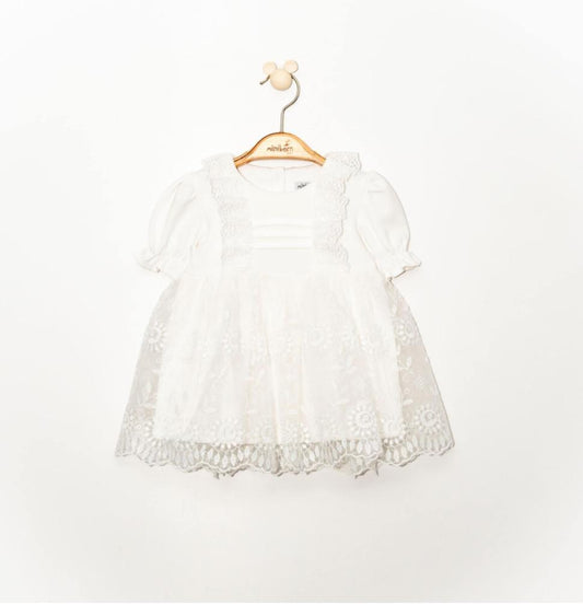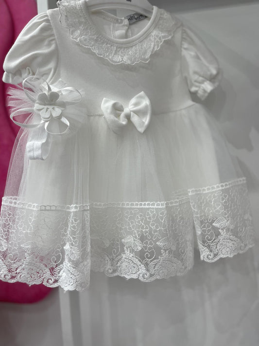 Baby White Flower Lace Dress Short Sleeve with Headband