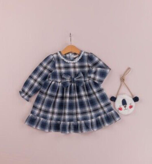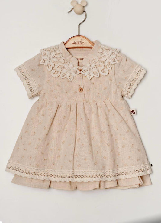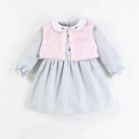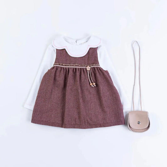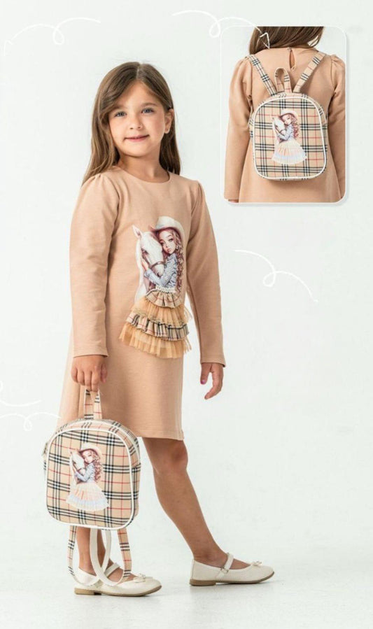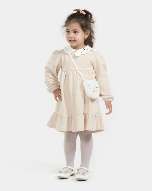Beige Kitty Dress with Kitty collar and fuzzy bag