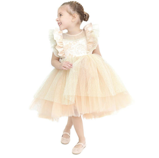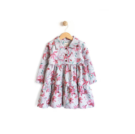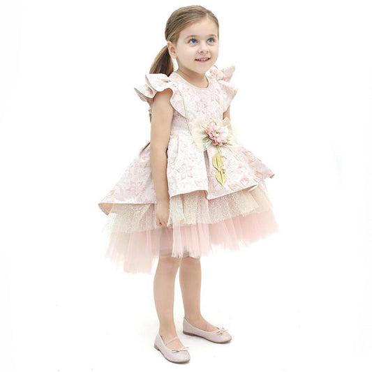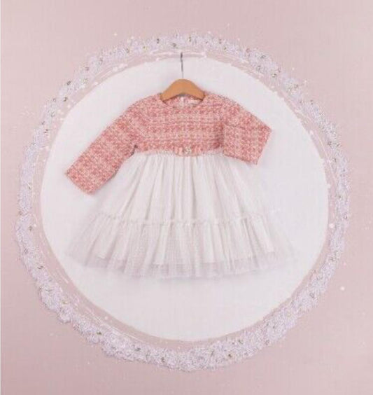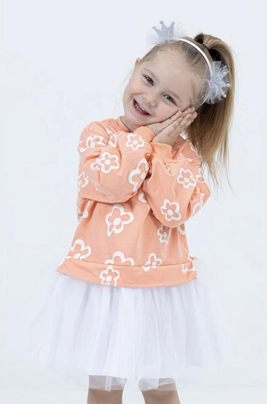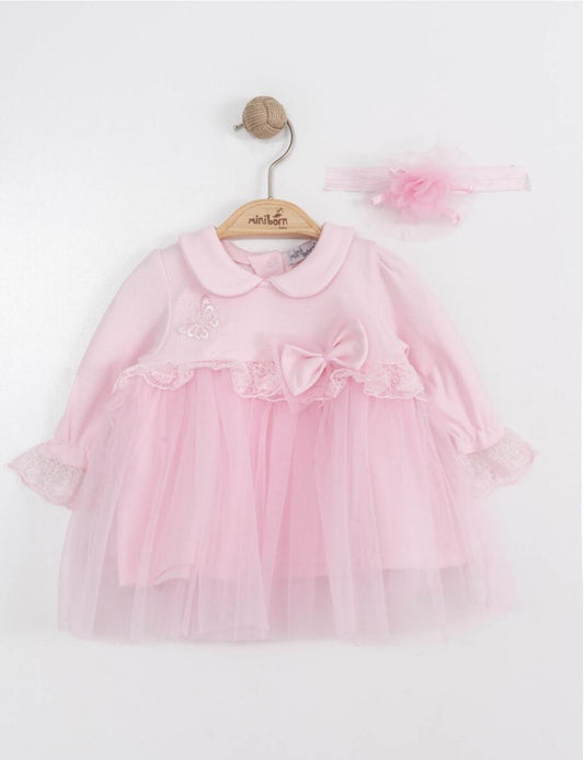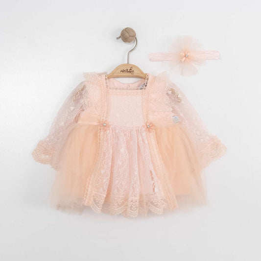 Mini Born Tulle Long Sleeve Dress Flower Headband