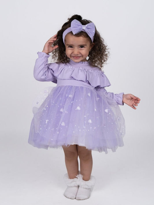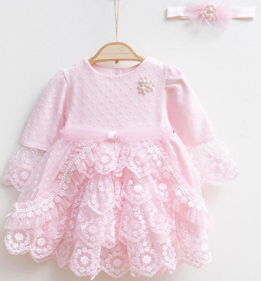 Pearl Flower Long Sleeve Tulle Dress and Headband