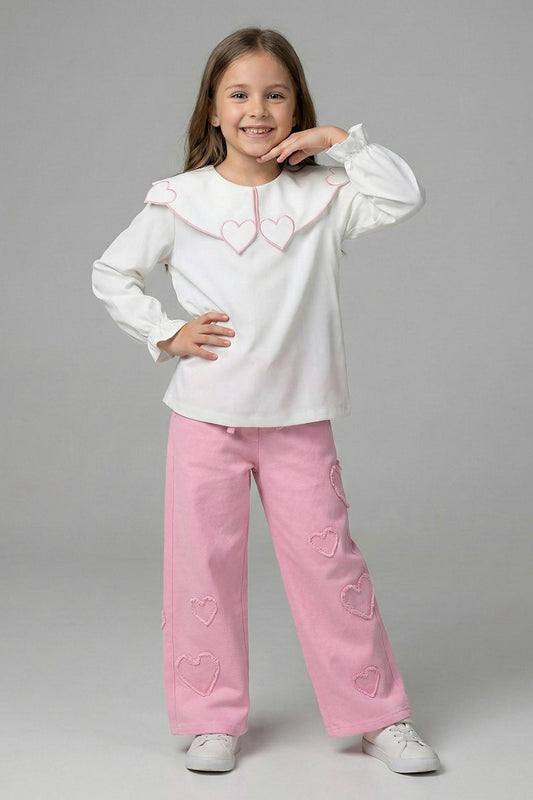 Girls Pink Hearts Soft Jean Pants