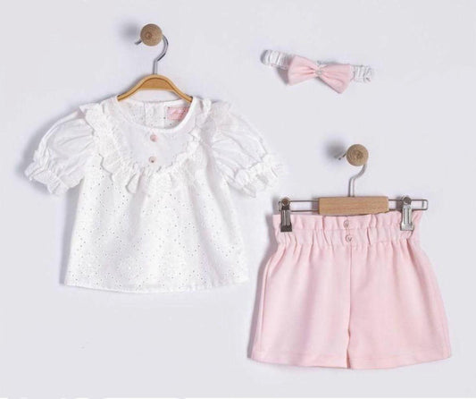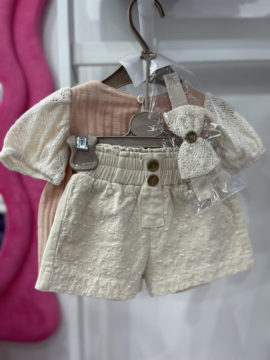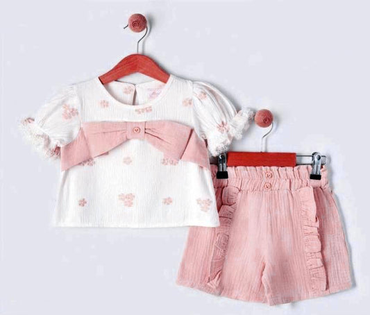 Baby Girl Top with Bow and Muslin Pink Shorts