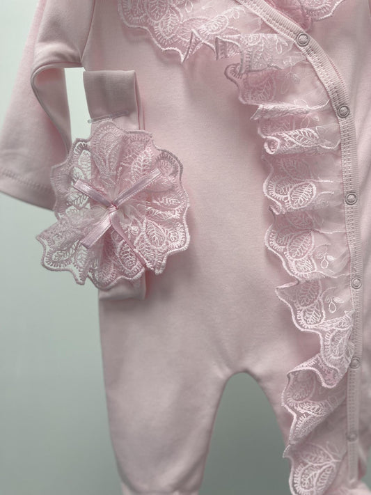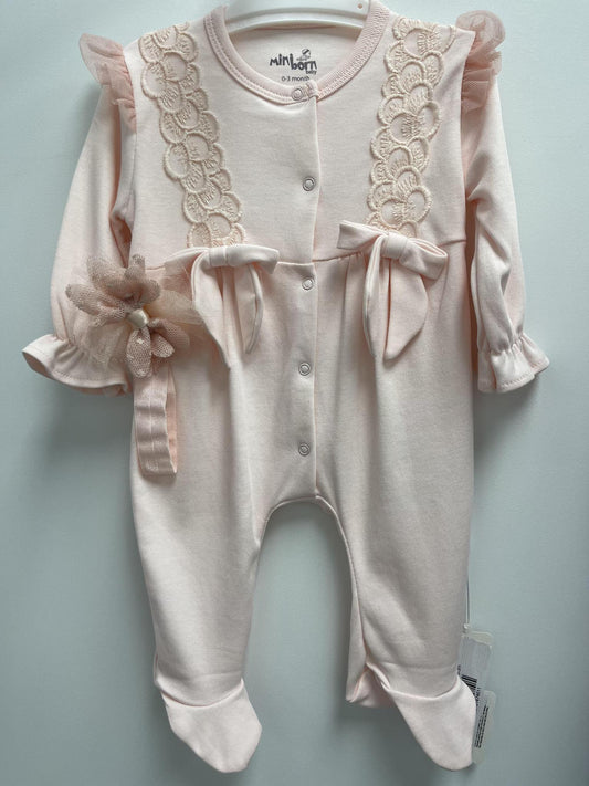 Baby Girl Peach Pink Romper with Collar and Rose Headband