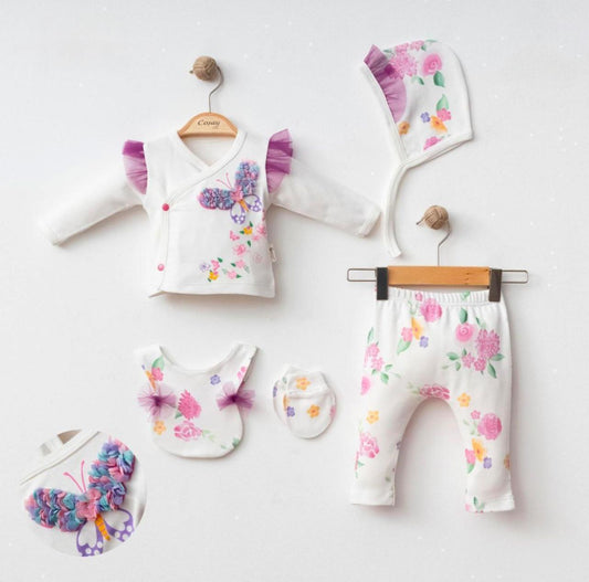 Baby Girl Beige Shorts with Muslin Top Fower Detail and Headband