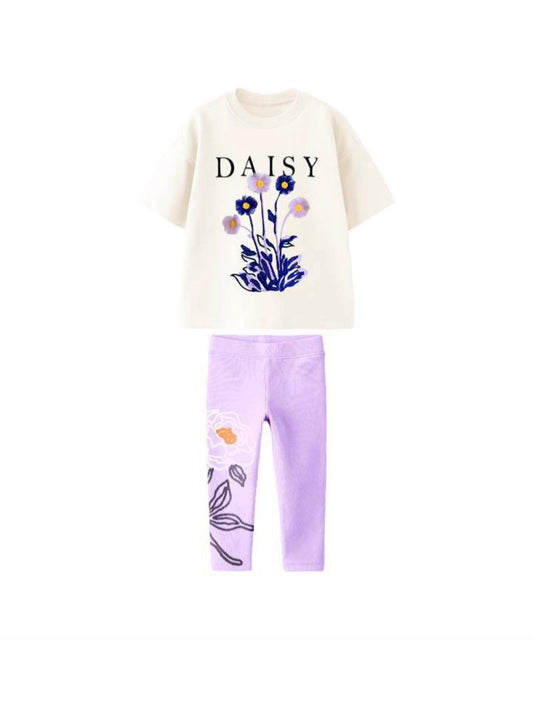 Girls Lilac Shine Tshirt with Pearls and Shorts Set