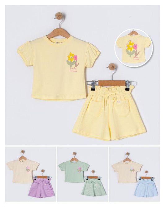 Light Blue Happiness is Contageous - Girls 2 Piece Shorts Set