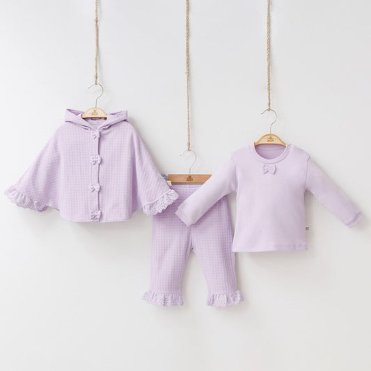 Lilac 3 Piece Poncho Pants and Blouse Set