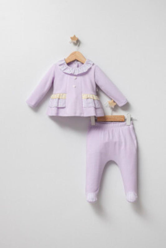 Lilac Ruffle Long Sleeve Body, Legging and Headband Set