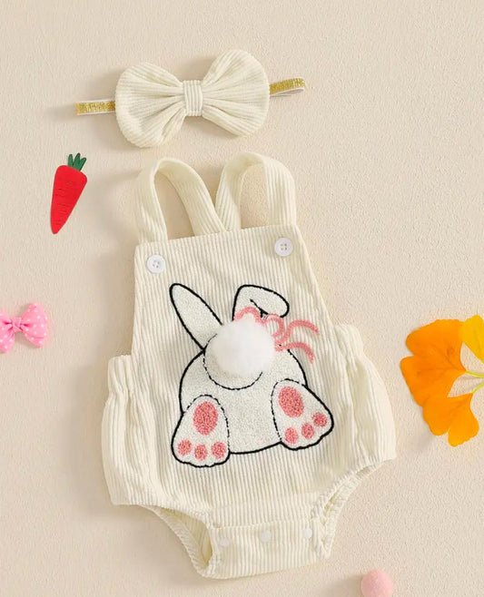 Baby Girl Ivory Bunny Romper with Headband