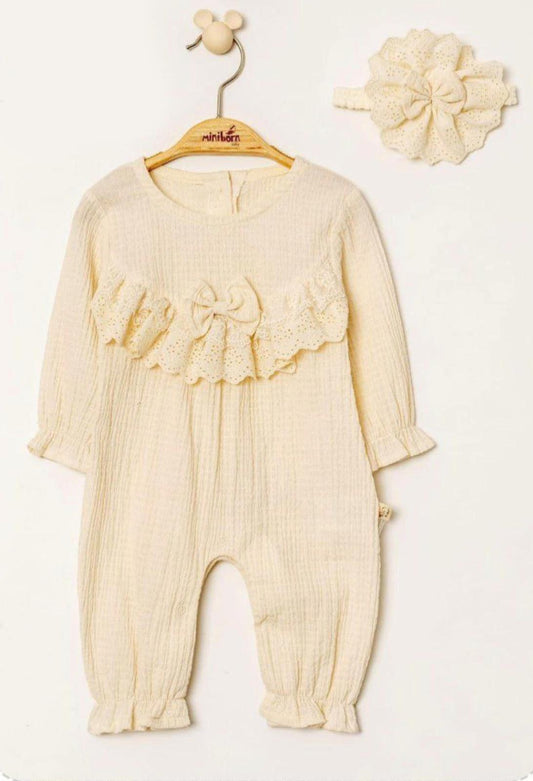Baby Girls Beige Romper with Headband