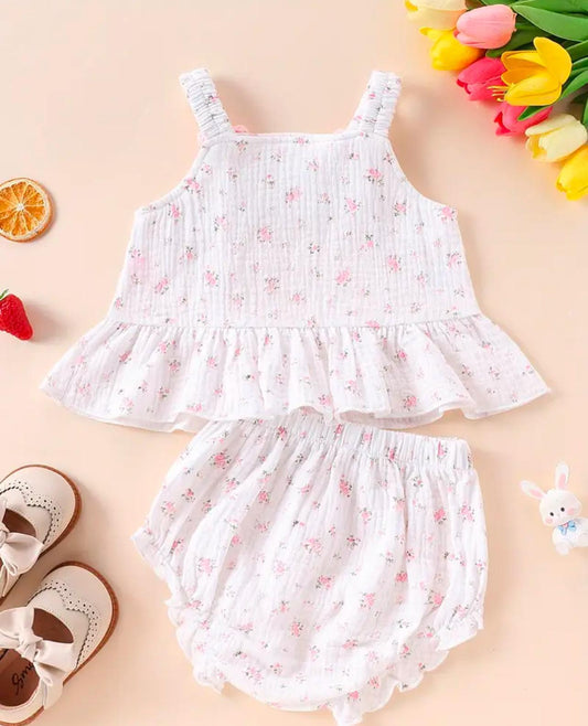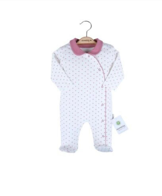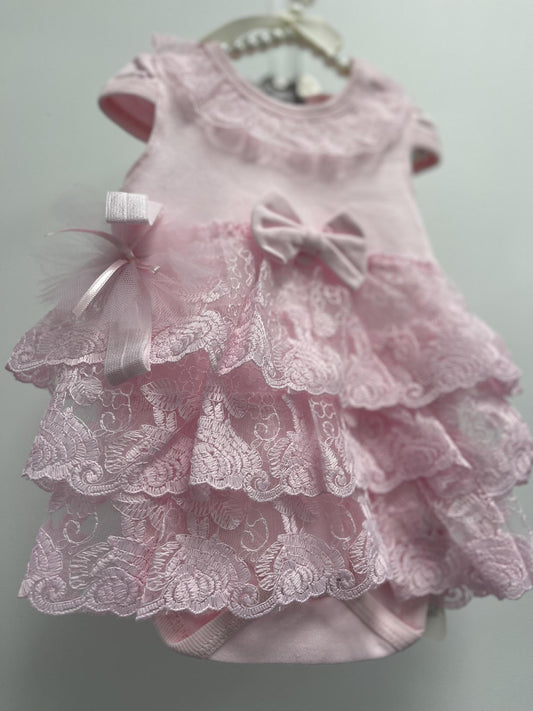 Baby Girls Pink Short Sleeve Onesie with Lace and Headband