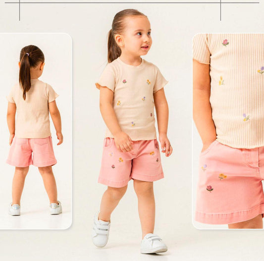 White Tshirt With Beige Shorts & 3D Ball Detail