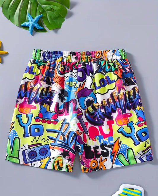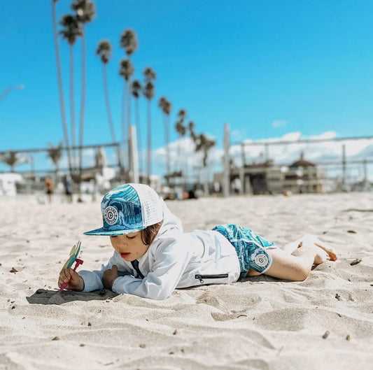 Boys Swimming Trunks with Sun Hat - Seashell Print