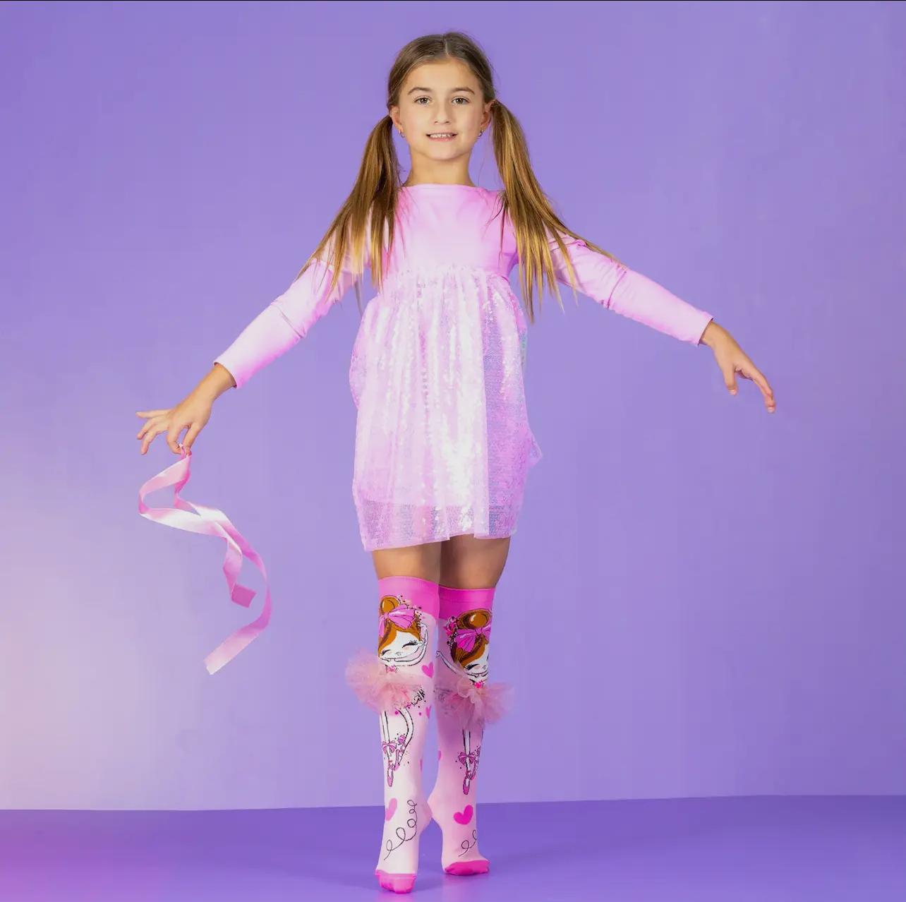 Dance like nobody's watching in our Ballerina Socks with custom-made tutu at the top of the skirt. For all ballerinas, pointe dancers and anyone who loves to dance, these kids and adult socks are made just for you! These novelty socks are perfect for crazy sock day, special occasions, birthdays, and adding music with every step you take!